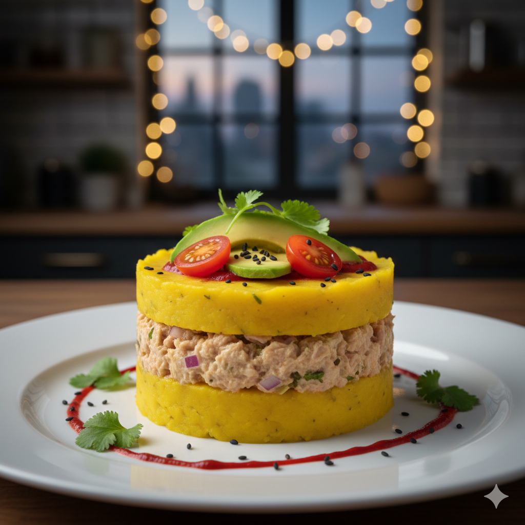 Der Name „Causa“ kommt vermutlich vom Quechua-Wort kawsay, was „Leben“ bedeutet. In Peru ist dieses Gericht so allgegenwärtig wie das indonesische Nasi Goreng in Jakarta. Thunfisch ist eine moderne Ergänzung, die das Gericht proteinreicher macht – eine perfekte schnelle Küche nach Feierabend, da man viele Komponenten vorbereiten kann.