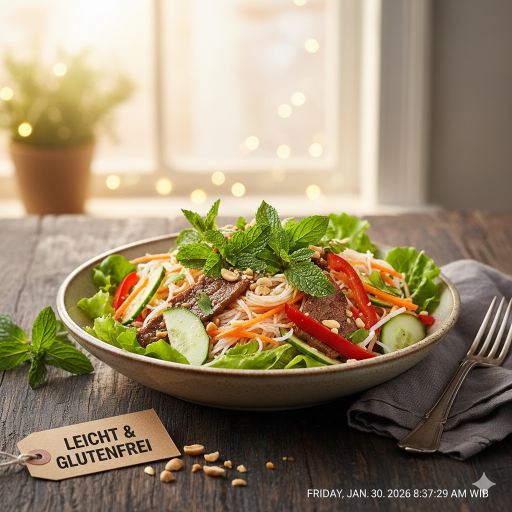 Wenn die Sonne hoch steht und die Temperaturen steigen, sehnt man sich nach einem leichten, frischen Abendessen. Vietnamesischer Reisnudelsalat ist genau das Richtige: knackiges Gemüse, aromatische Kräuter und zarte Reisnudeln – alles glutenfrei, leicht verdaulich und trotzdem sättigend. Er ist eine hervorragende Option für ein glutenfreies Mittagessen und bietet eine erfrischende Alternative.