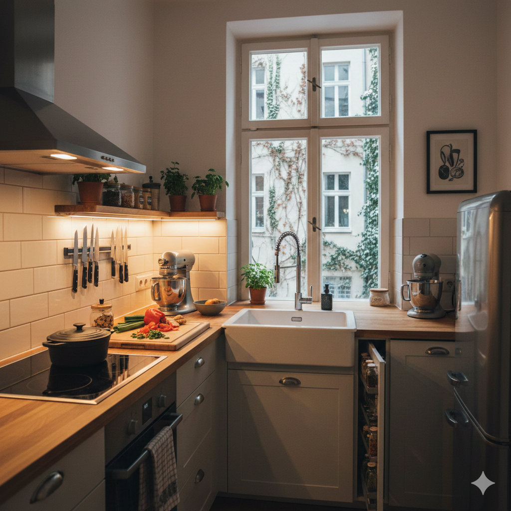 Eine große Küche verzeiht schlechte Planung. Eine kleine Küche nicht. Und genau deshalb zwingt sie dich, klüger zu denken. Wer wenig Platz hat, merkt schnell: Jeder Handgriff zählt. Jeder unnötige Gegenstand stört. Jede schlechte Entscheidung rächt sich beim Kochen.
