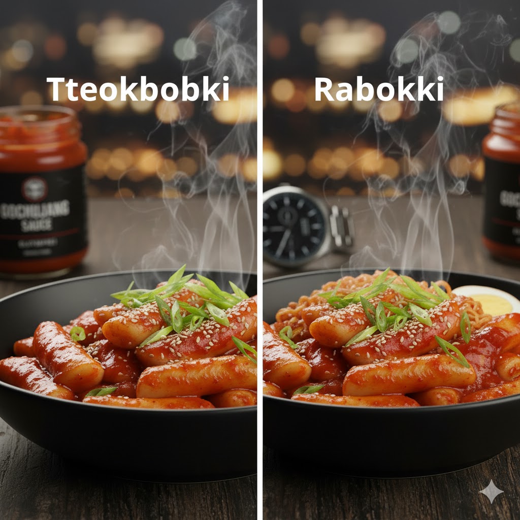 Tteokbokki und Rabokki teilen sich die gleiche Sauce, aber sie spielen in völlig unterschiedlichen Ligen.