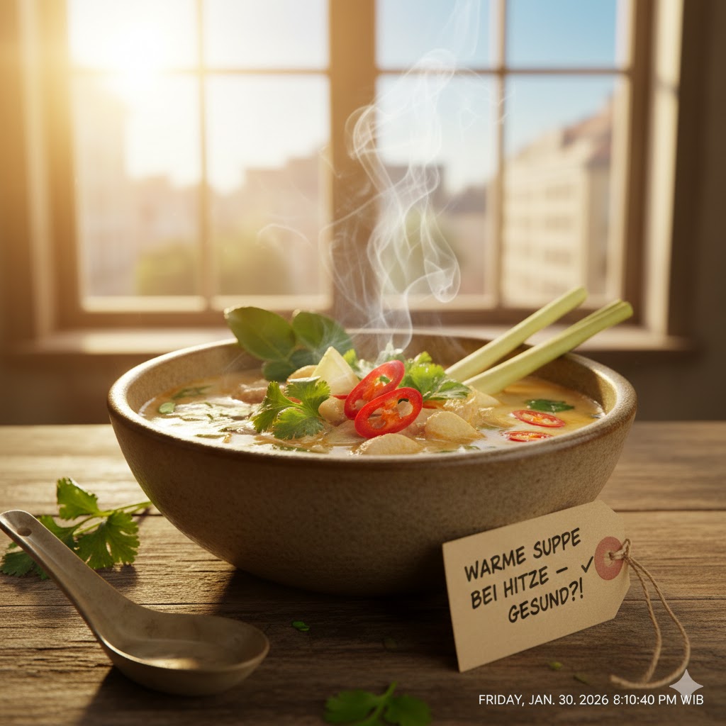 Zusammenfassend lässt sich sagen: Die Antwort auf die Frage „Warme Suppe bei Hitze gesund?“ lautet definitiv Ja. Es ist eine sanfte Art, den Körper bei der Selbstkühlung zu unterstützen, ohne den Magen zu schocken.